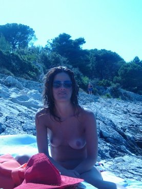 Грудастая грешница пришла на песчаный берег в черных плавках и начала купаться в озере. Закончив с баловством в воде потаскушка сняла с себя мокрые трусы и оголила небритую писю. Чтобы пушистая промежность быстрее высохла, бикса легла на песок и раздвинув ножки стала греть волосатое влагалище под лучами солнца.