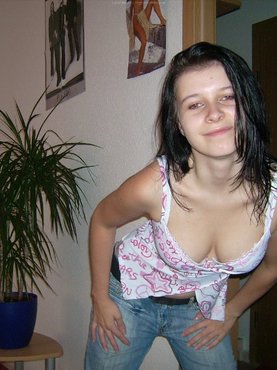 Закрыв дверь в комнату, очаровательная грешница сняла с себя одежду, а потом сменила комплект черного белья на леопардовые трусики, в которых залезла на красный диван и начала позировать. Молодуха с удовольствием выставляет на показ свои упругие бедра, а оптом переключается на небольшие груди которые от стеснения прикрывает рукой.